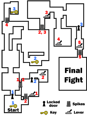 As the game changed, the level design changed to accommodate the new mechanics, such as the doors, keys, spikes and levers.